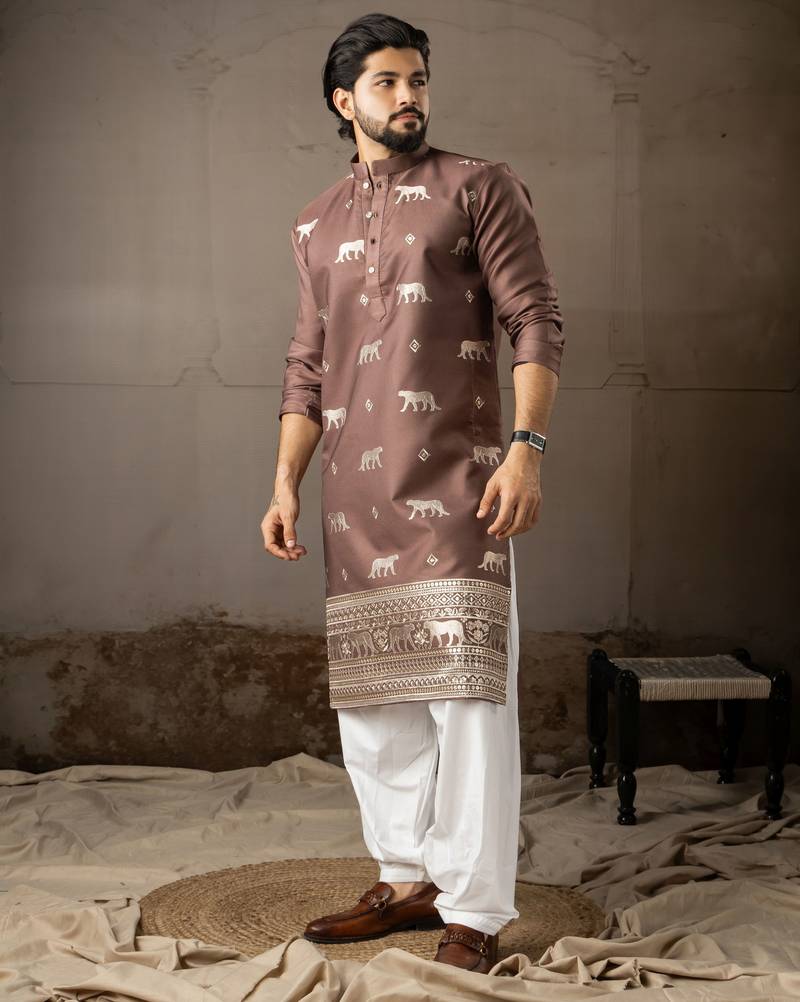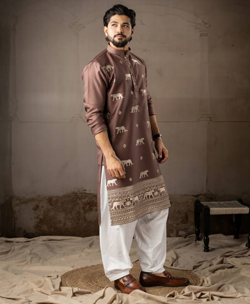 | Product Name | Brown Color Rayon Fabric Designer Embroidered Partywear Kurta Payjama For Men | |