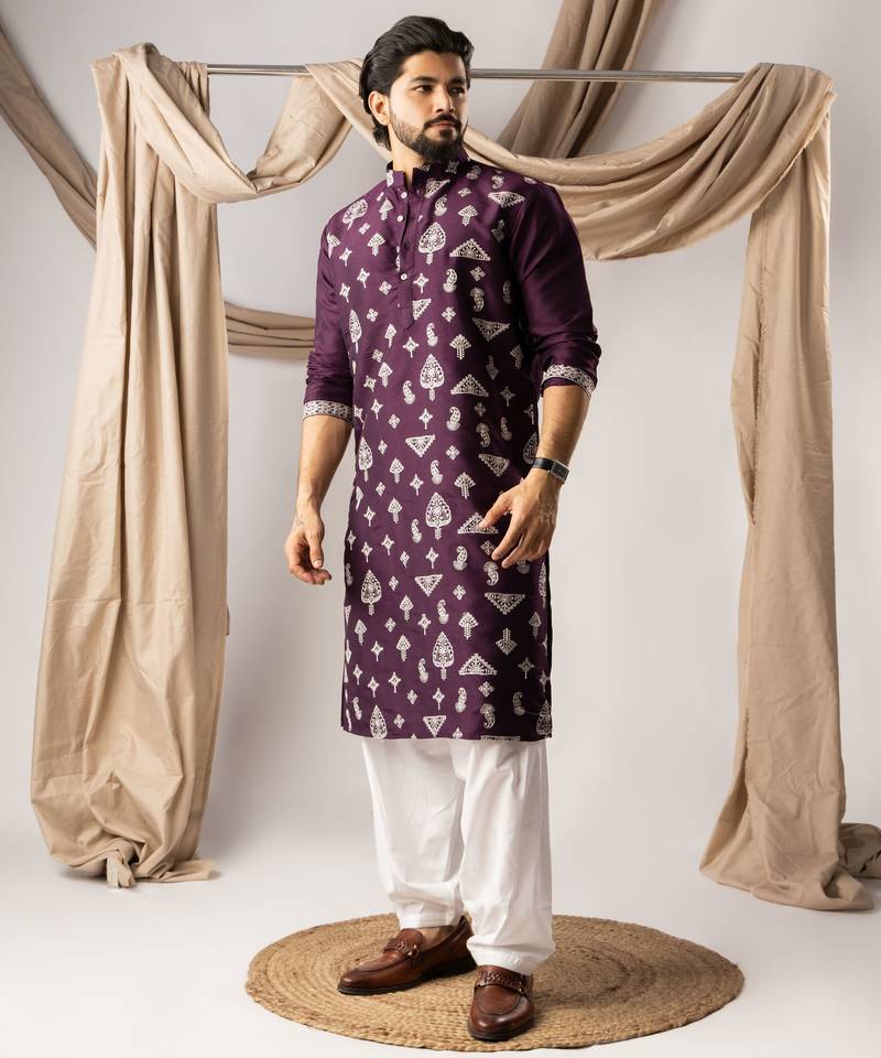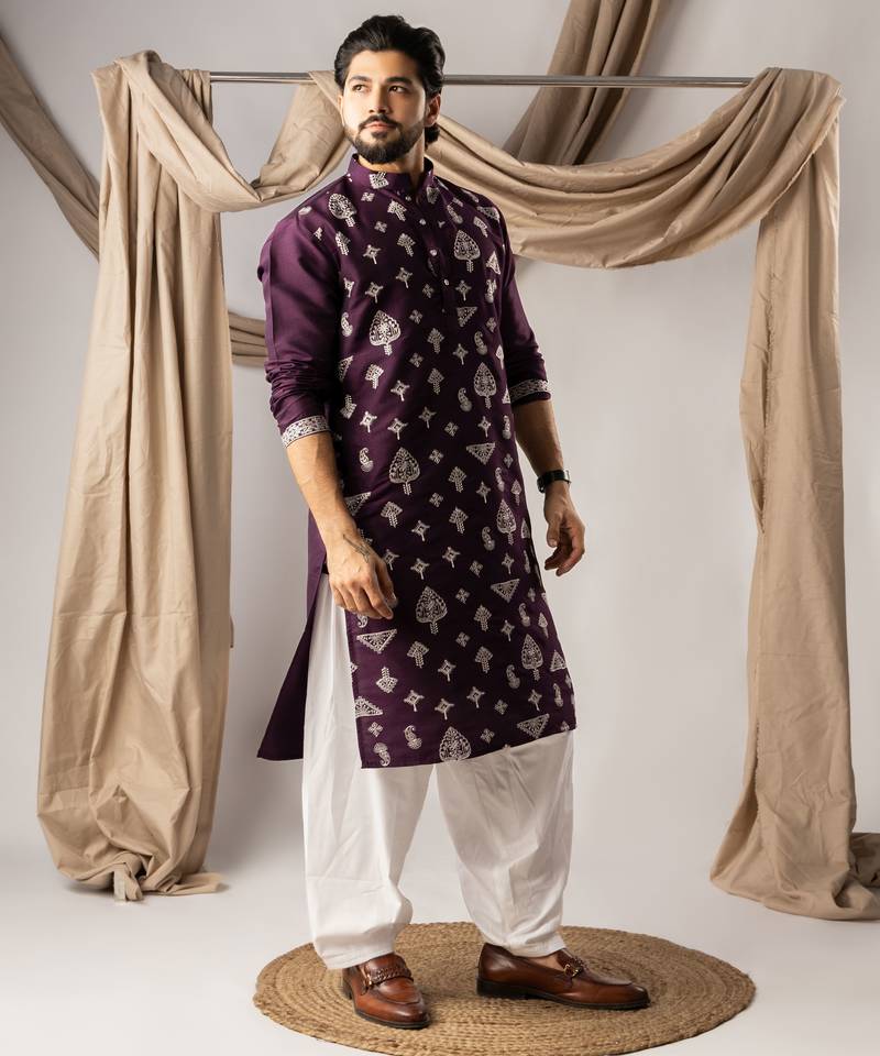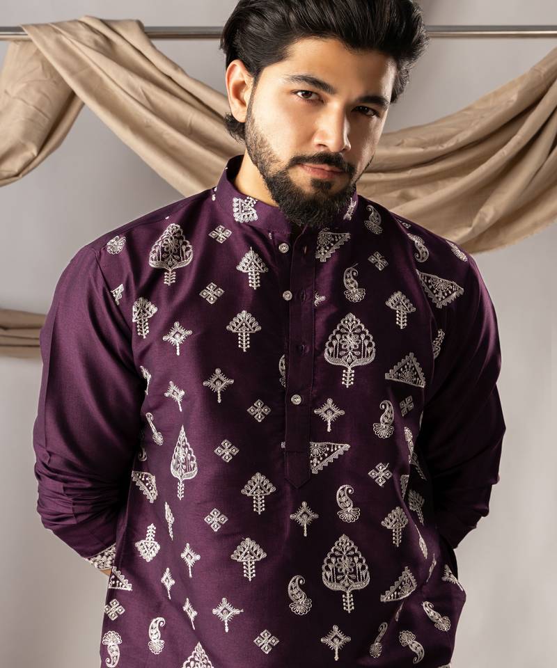 | Product Name | Dark Purple Color Smart Embroidered Kurta For Men's Ceremonial Looks | |