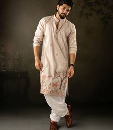 Off white color rayon fabric designer embroidered partywear kurta payjama for men