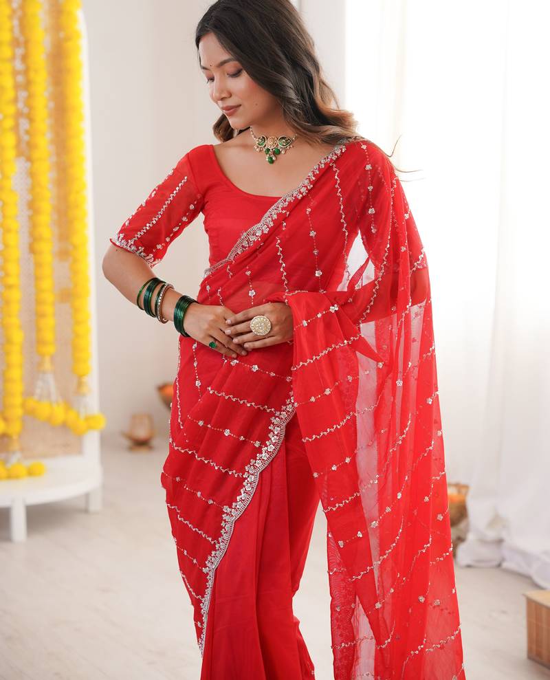 | • | Saree | : | Color- Red / Fabric- Tissue |