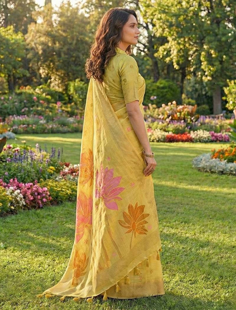 | Product Name | Yellow Color Linen Cotton Fabric Woven Designer Partywear Saree | |