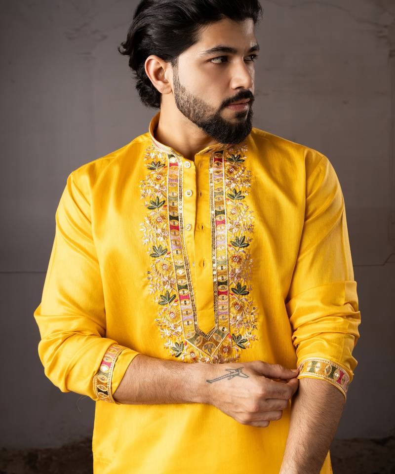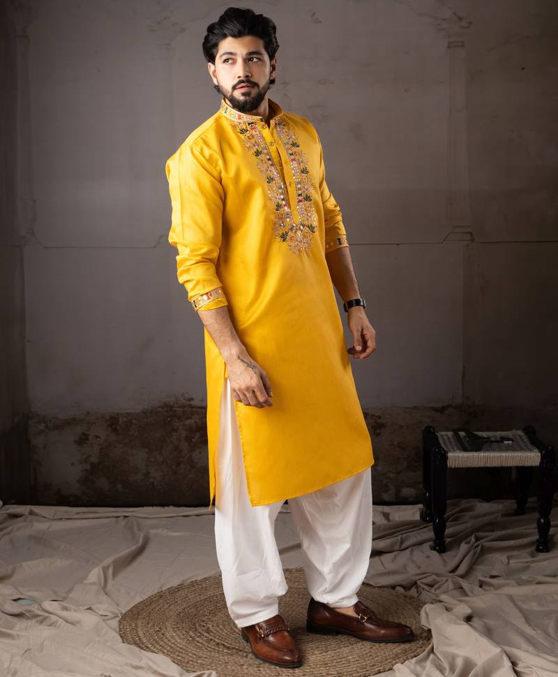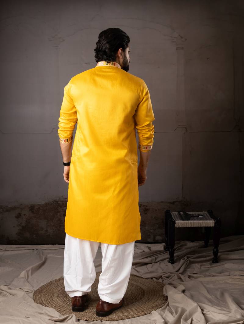 | Product Name | Yellow Color Smart Embroidered Kurta For Rich Classy Men's Looks | |