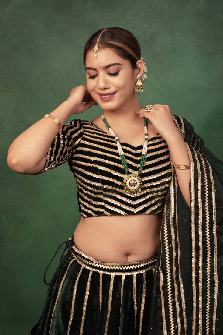 | Product Name | Bottle Green Velvet Gotapatti Lehenga Set | |
