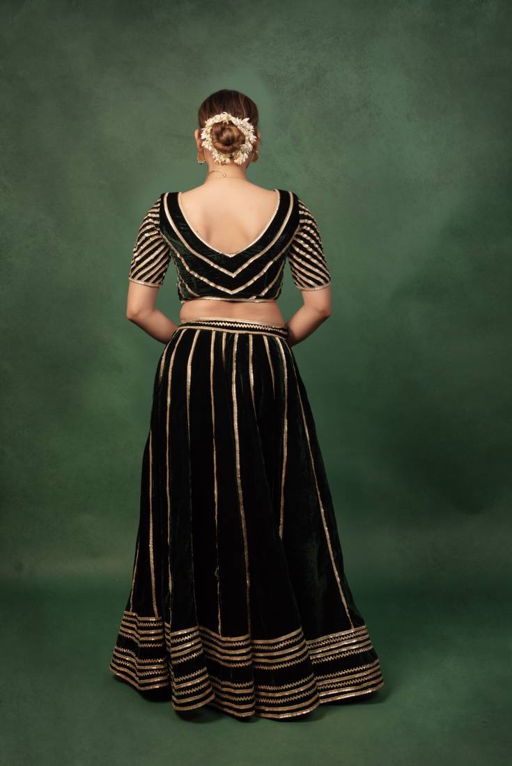 Bottle green velvet gotapatti lehenga set