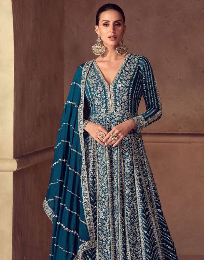 | Product Name | Teal Blue Chiffon Salwar Kameez Full Stitched Free Size | |