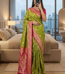 Saree : Color- Parrot Green / Fabric- Faux Banarasi