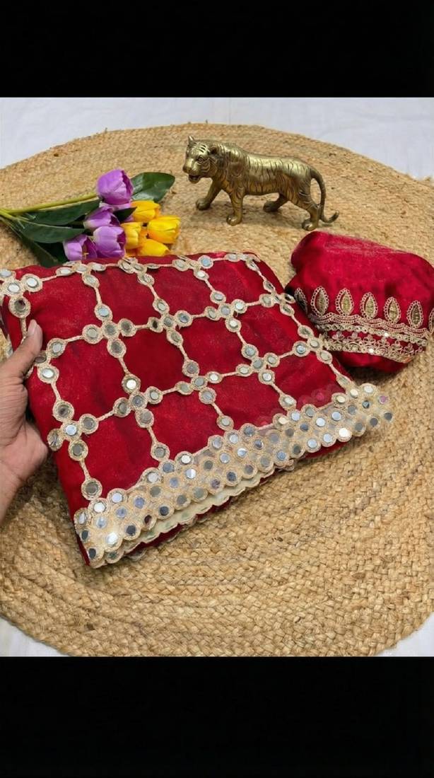 | Product Name | Pink Pure Soft Fandy Sattin Silk With Real Mirror Work Lace Border Saree | |