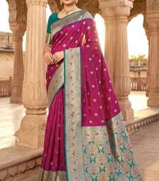 Pink soft banarasi silk saree with zari weaving meenakari design