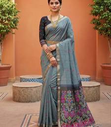 Grey soft pure muga cotton saree with meenakari weaving motifs and contrast blouse