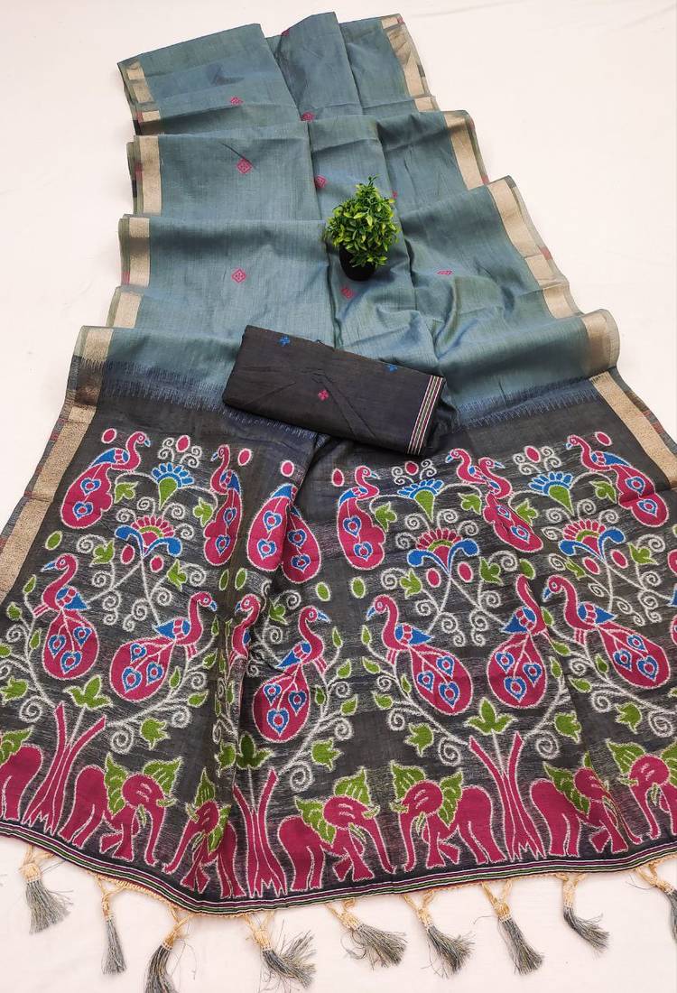 | Product Name | Grey Soft Pure Muga Cotton Saree With Meenakari Weaving Motifs And Contrast Blouse | |
