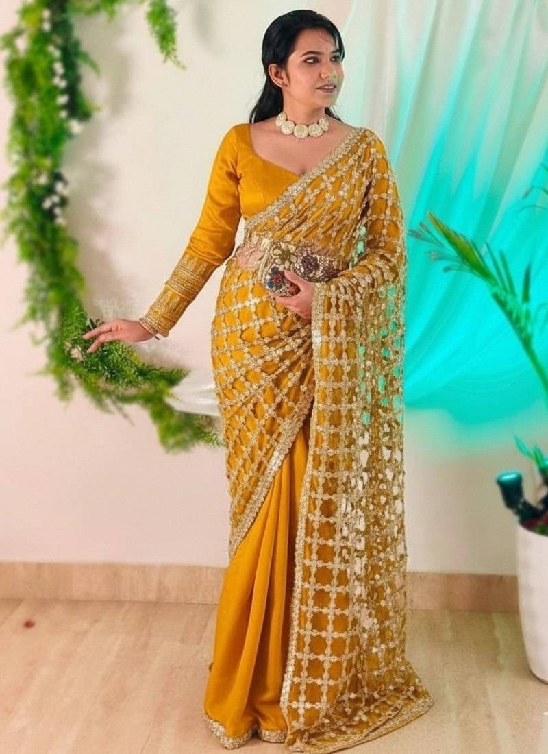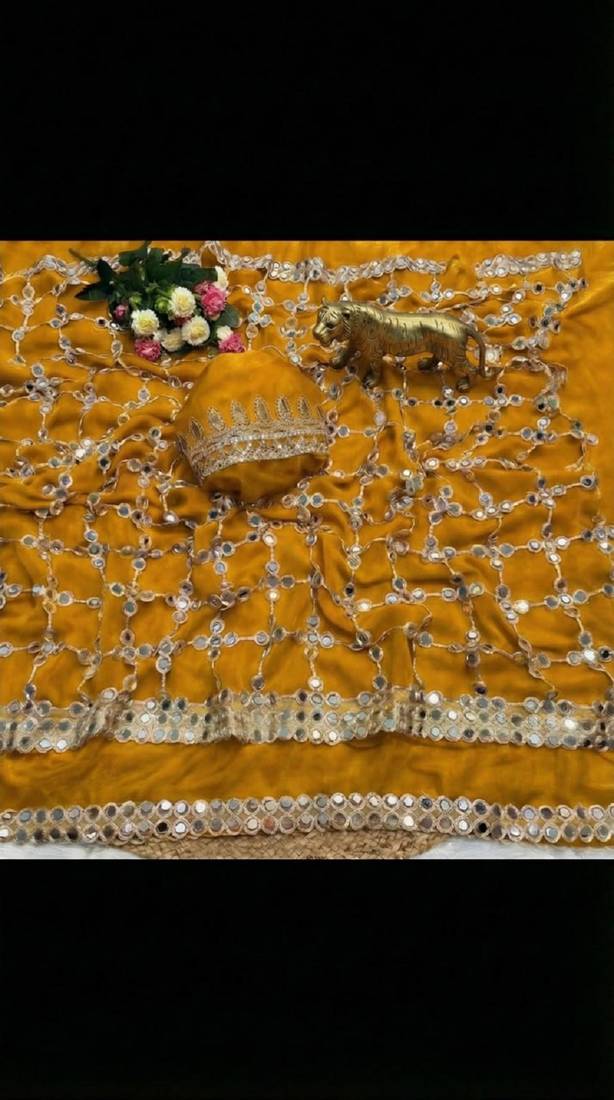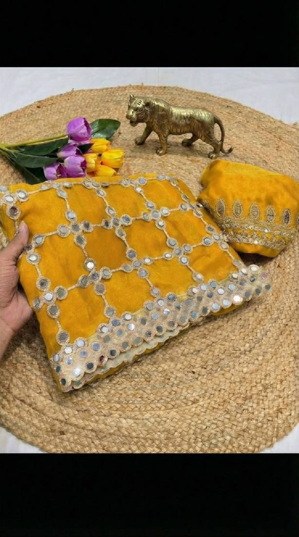 | Product Name | Yellow Pure Soft Fandy Sattin Silk With Real Mirror Work Lace Border Saree | |