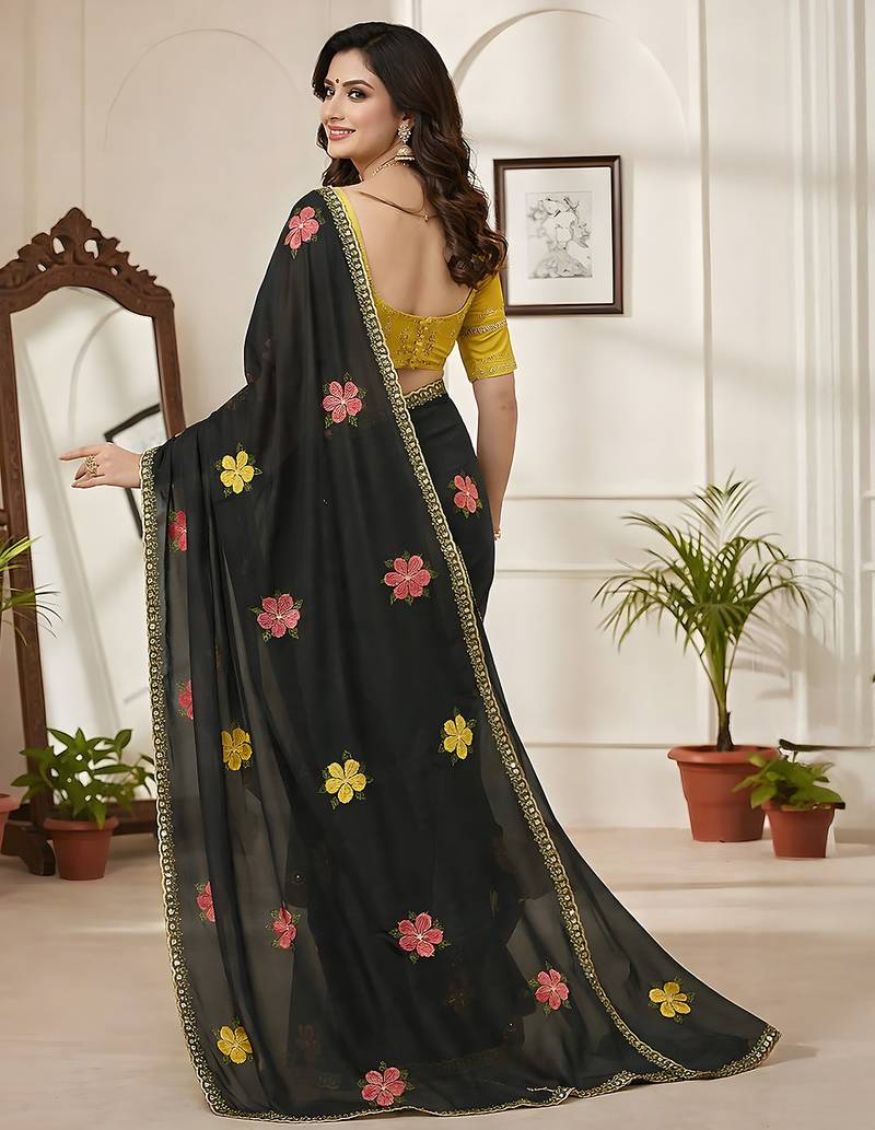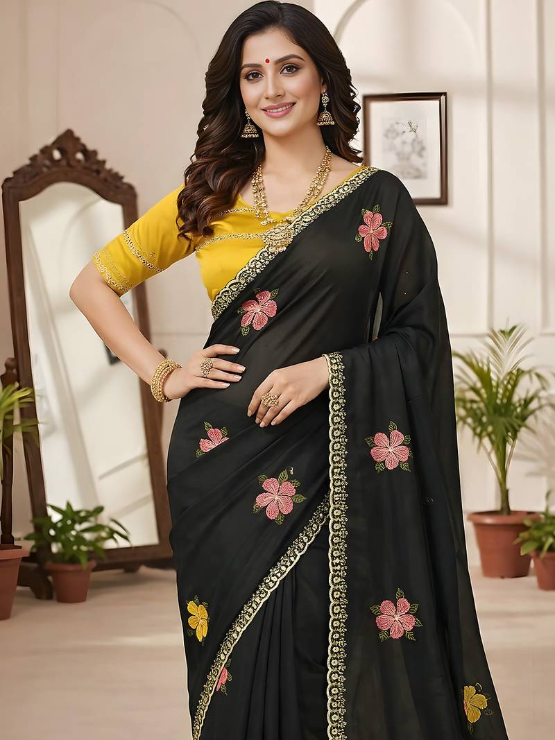 | Product Name | Black Mannequin Embroidery Work Saree With Miorror Work And Cut Work Border | |