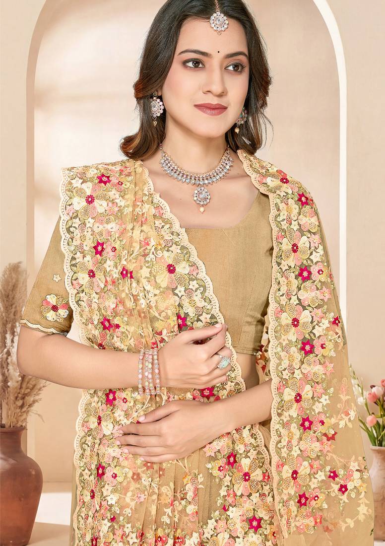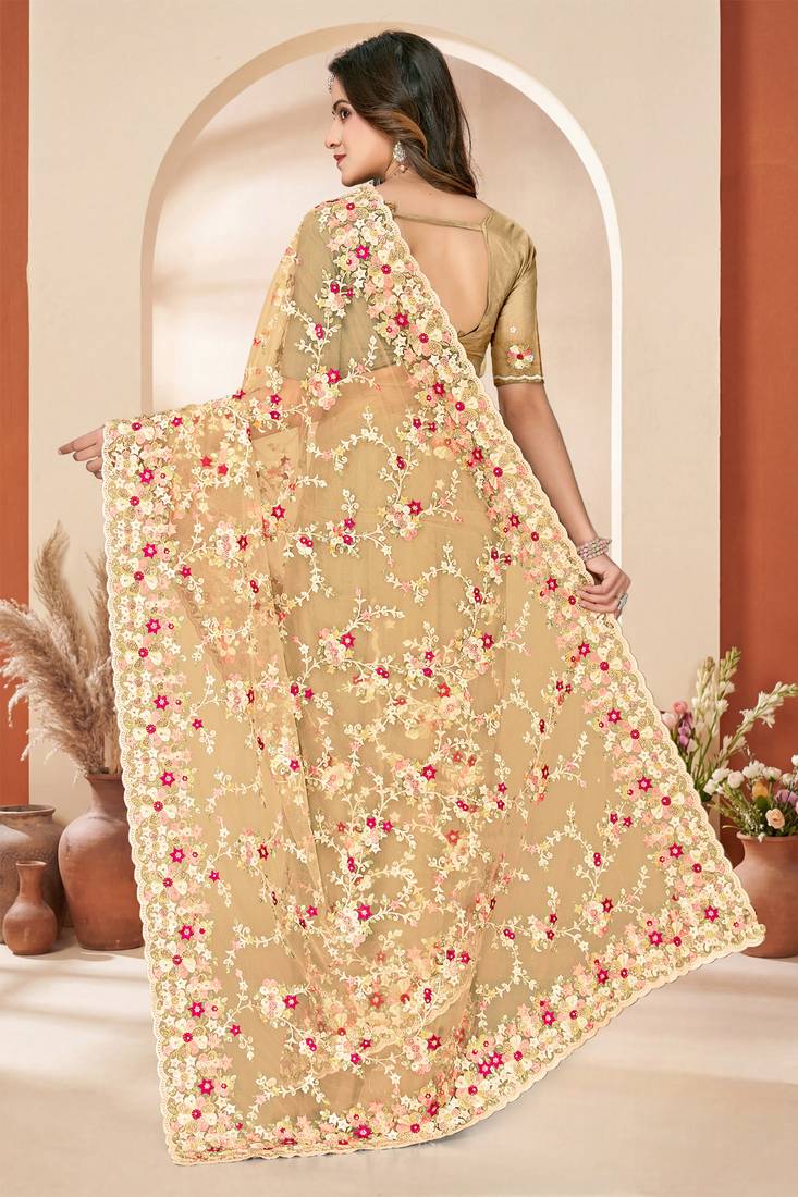 Product Name Mustard Heavy Resham Sequin Embroidered Work Net Saree Sari For Women
