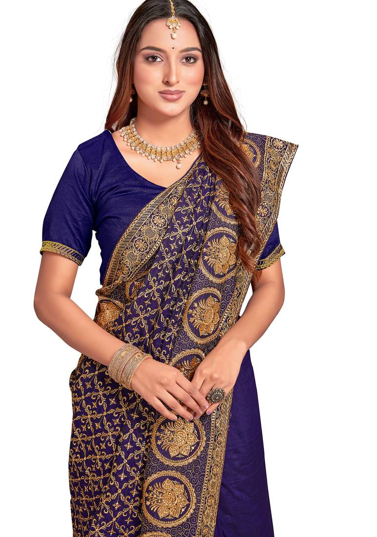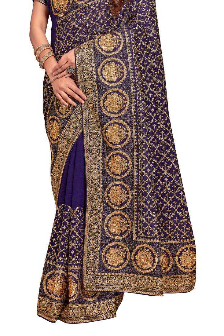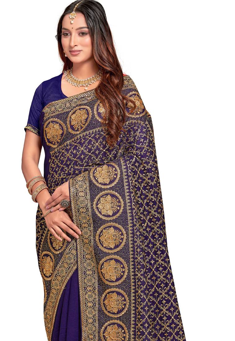 | Product Name | Navy Blue Sequin Embroidered Work Vichitra Silk Blend Saree For Women | |
