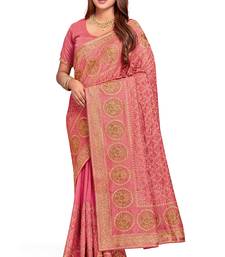 Peach sequin embroidered work vichitra silk blend saree for women