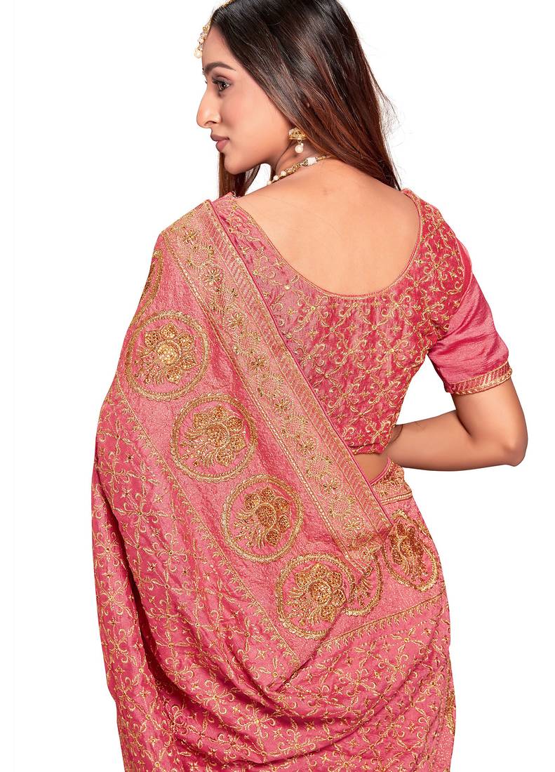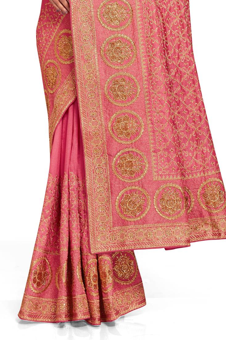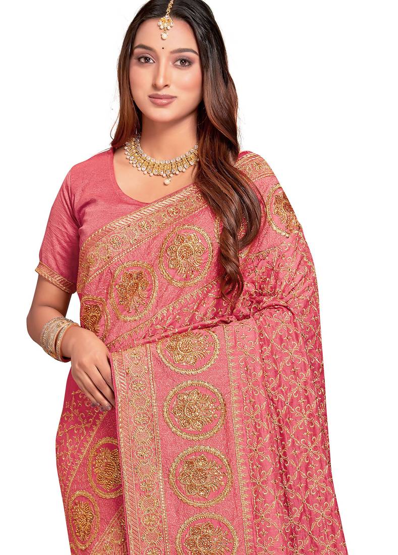 Product Name Peach Sequin Embroidered Work Vichitra Silk Blend Saree For Women