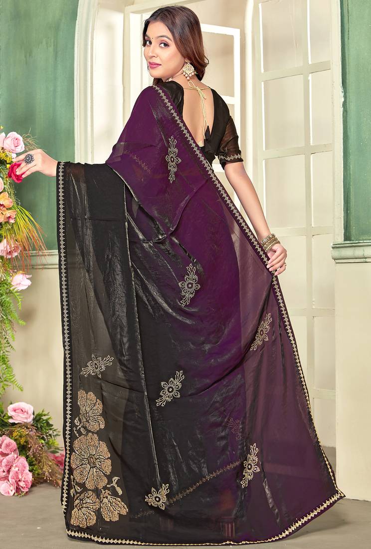 | Product Name | Purple Half N Half Satin Silk Party Wear Wedding Saree With Matching Blouse Piece | |