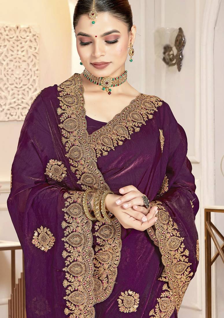 | Product Name | Wine Color Heavy Coding Zarkan Embroidered Work Satin Silk Saree Sari | |