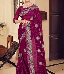 Wine sequin zari resham stone embroidered georgette designer saree for women