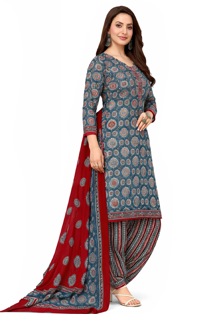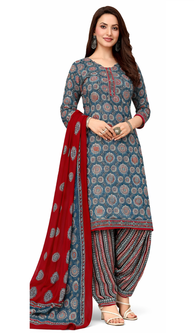 Multicolor color crepe silk printed women unstitched dress material