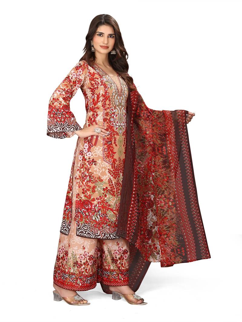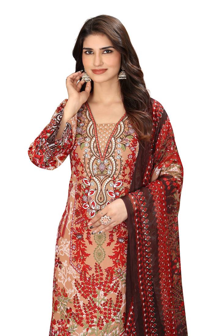 | Product Name | Orange Color Crepe Silk Printed Women Unstitched Dress Material | |