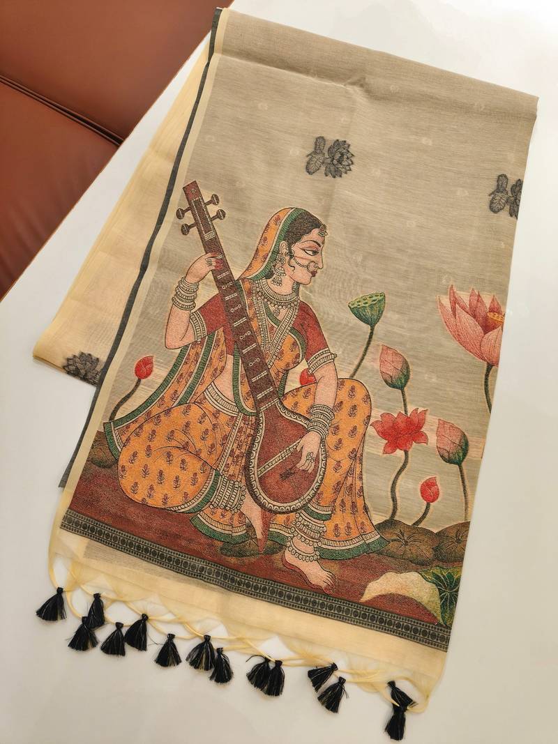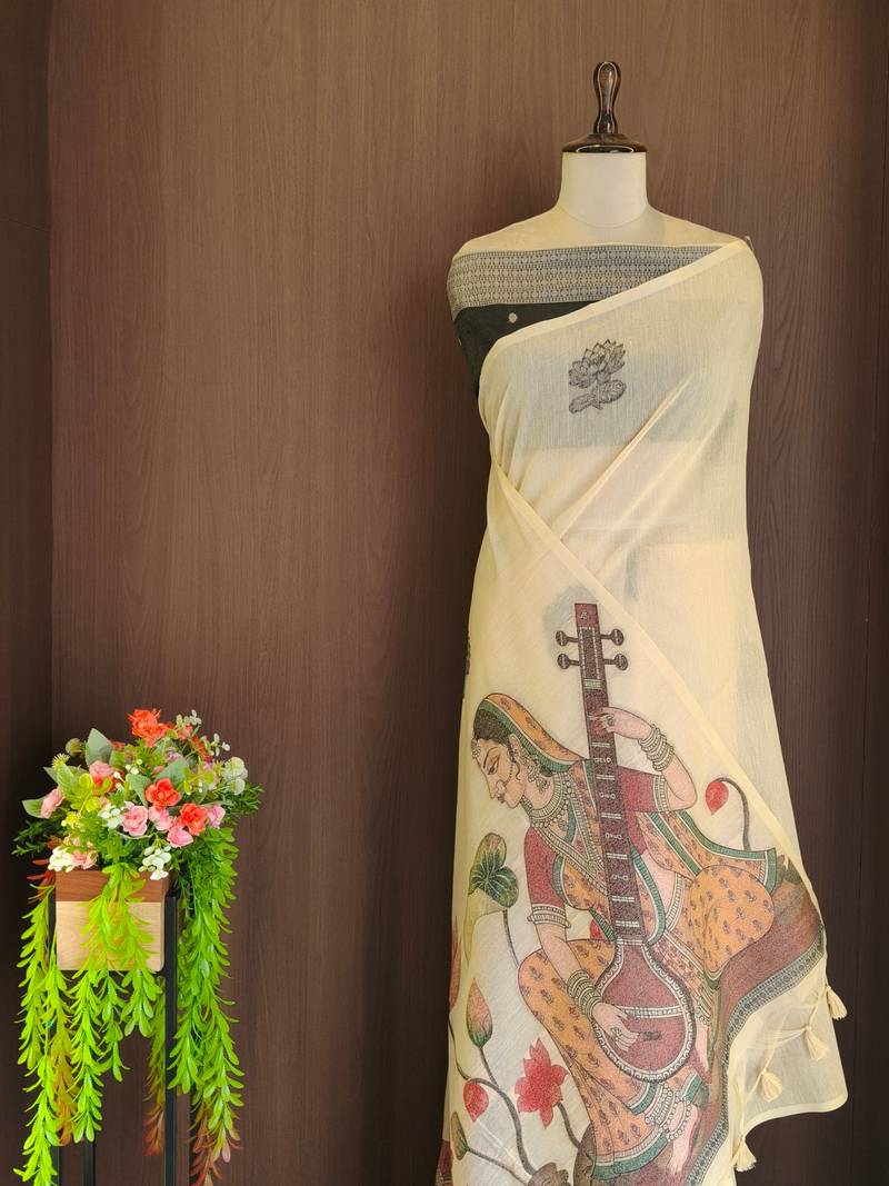 | Product Name | Cream Color Chanderi Cotton Saree With Contrast Blouse | |