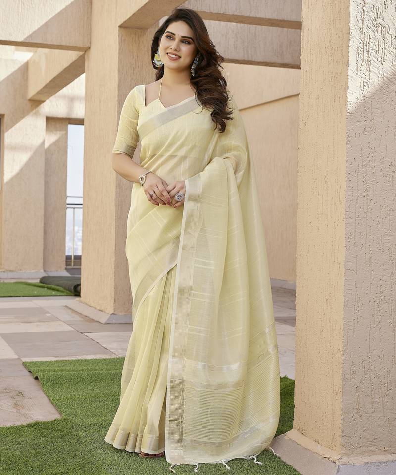| Product Name | Cream Color Linen Art Silk Saree With Plain Blouse | |