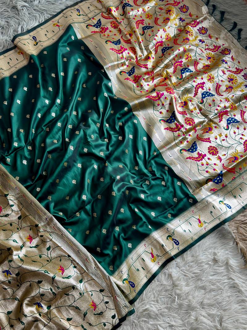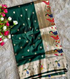 Dark green color paithanai art silk saree with blouse