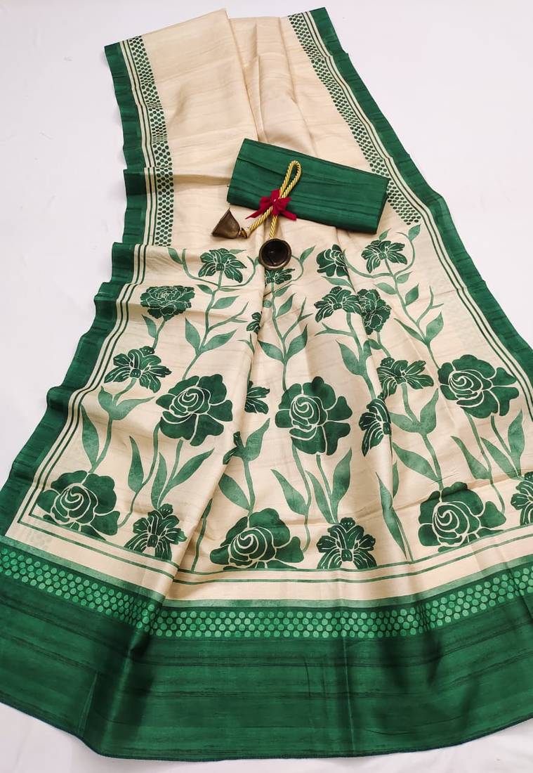 Green color cosmos art silk saree with blouse