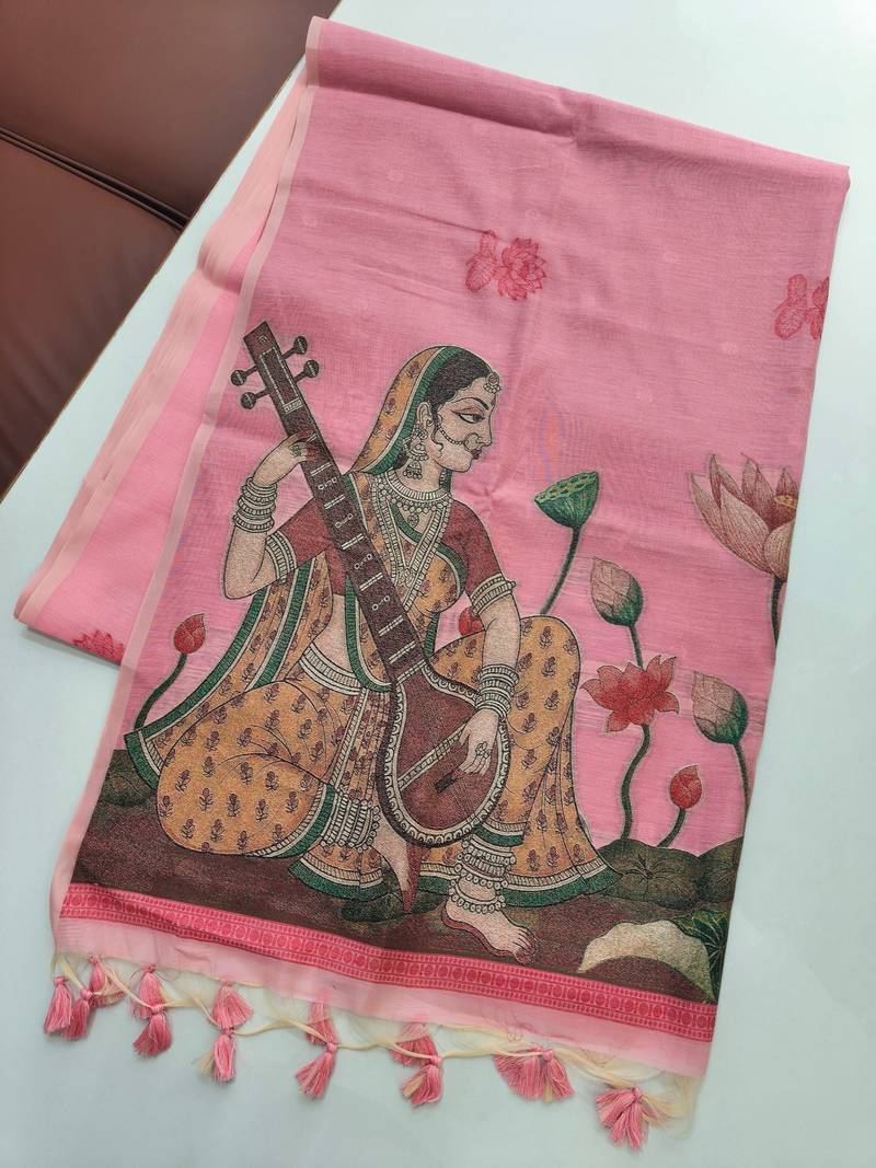 Product Name Pink Color Chanderi Cotton Saree With Contrast Blouse