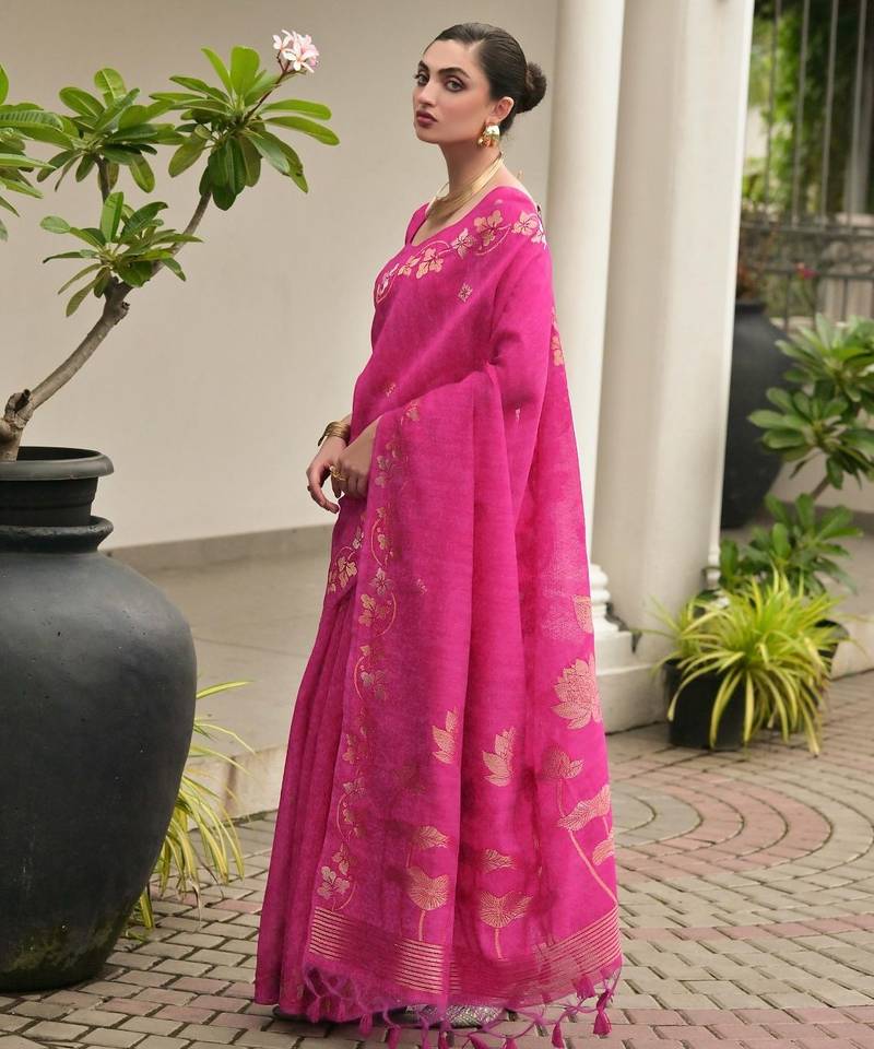 | Product Name | Pink Color Jute Art Silk Saree With Blouse | |