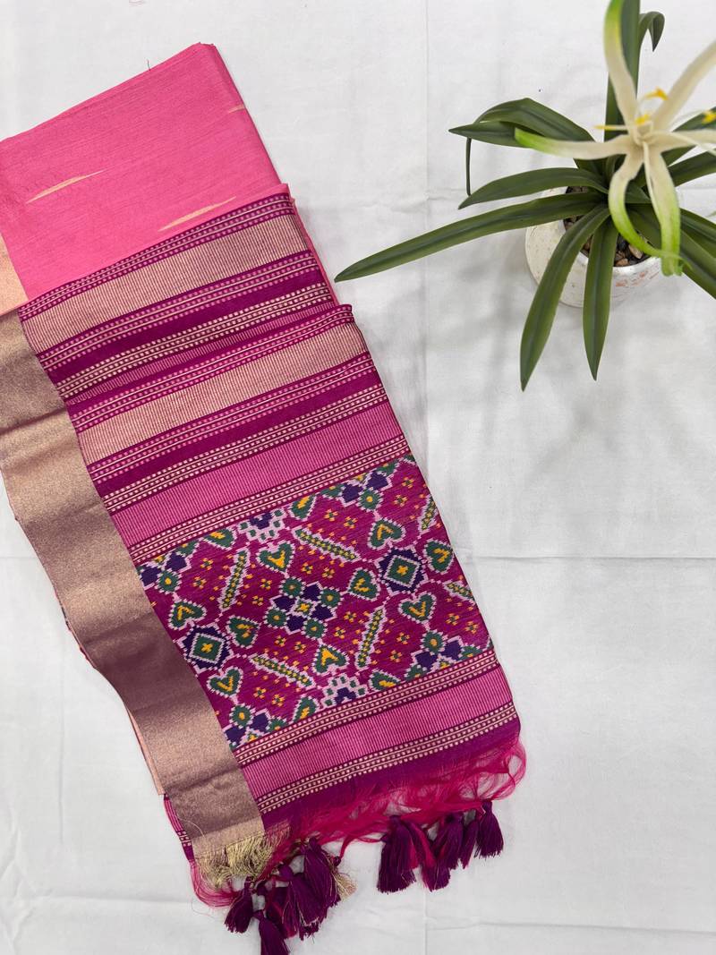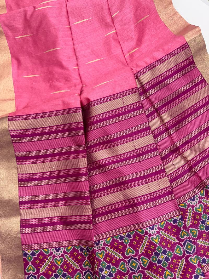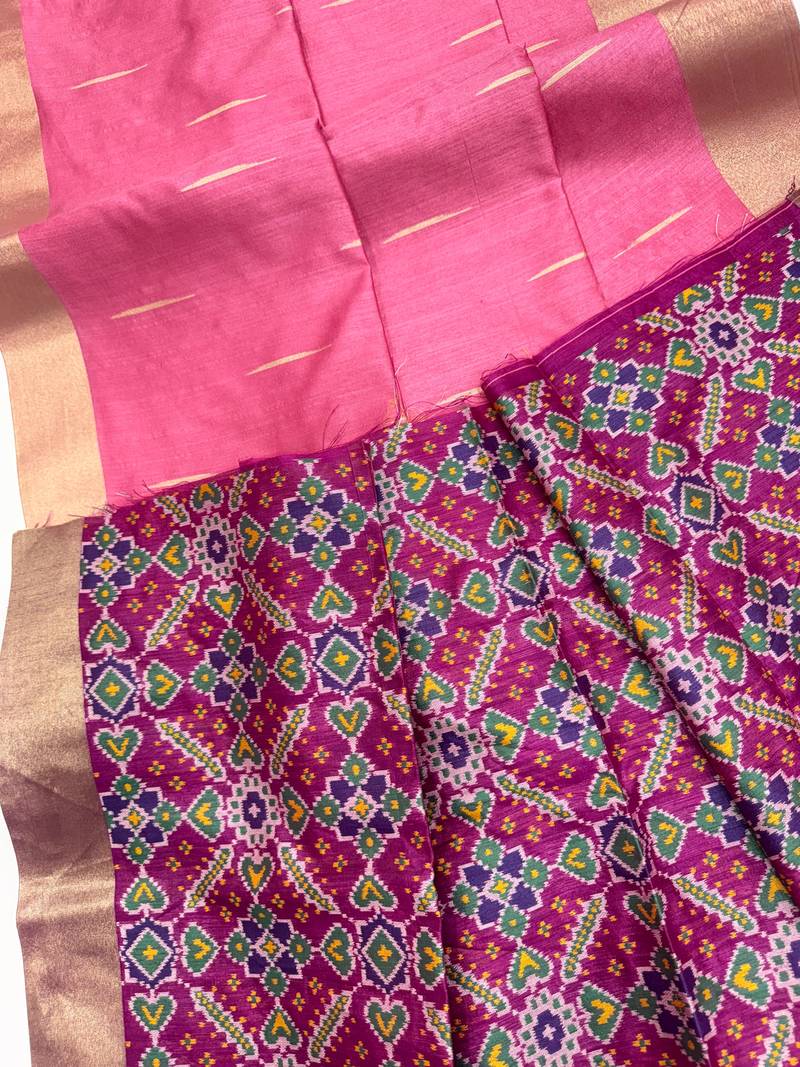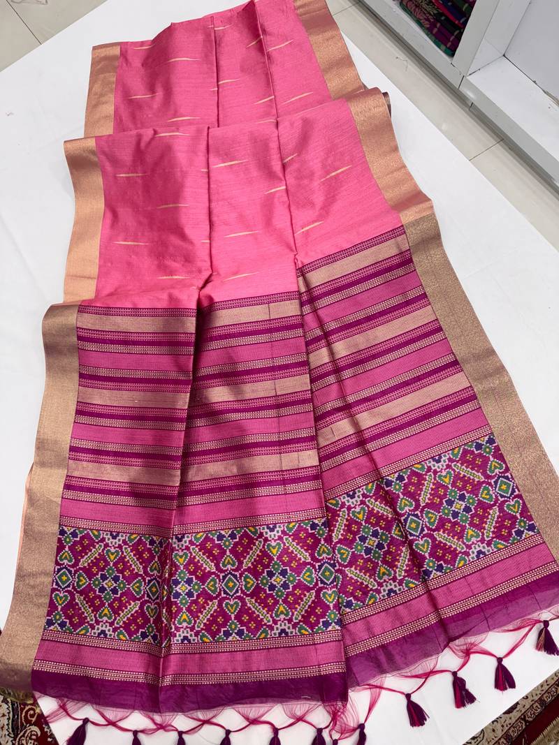 Product Name Pink Color Khadi Art Silk Saree With Contrast Blouse