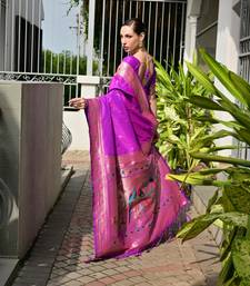 Purple color banarasi paithani art silk saree with plain blouse
