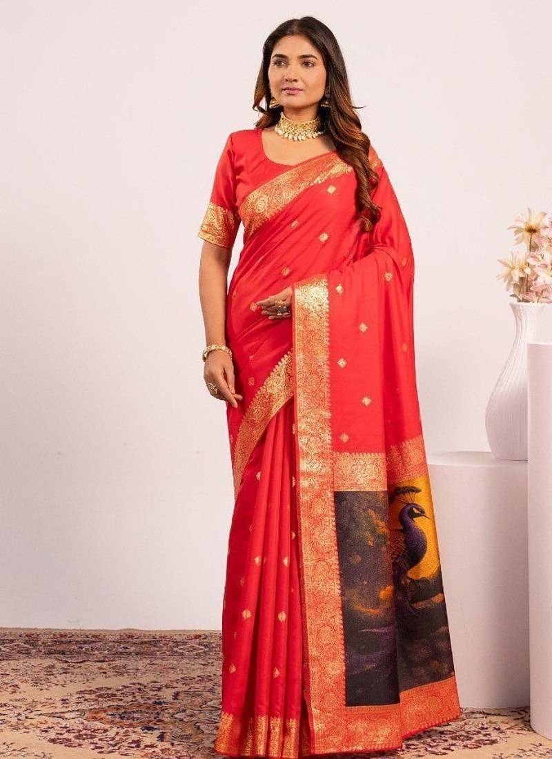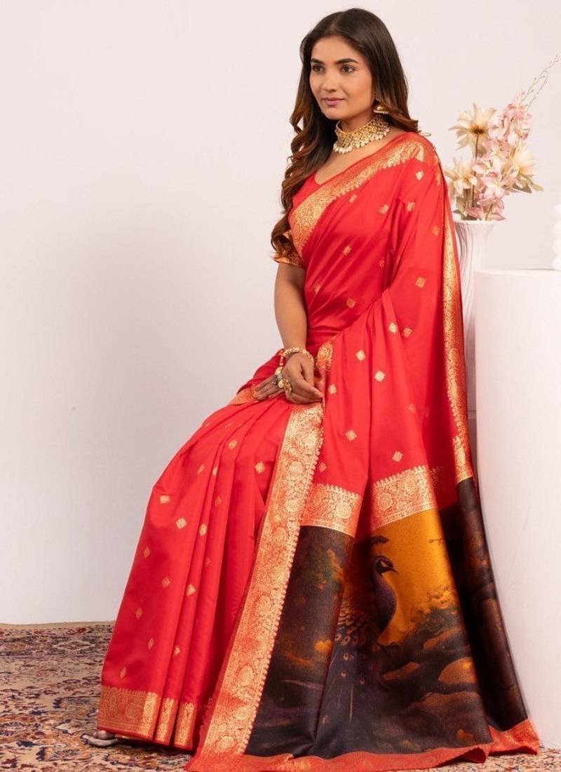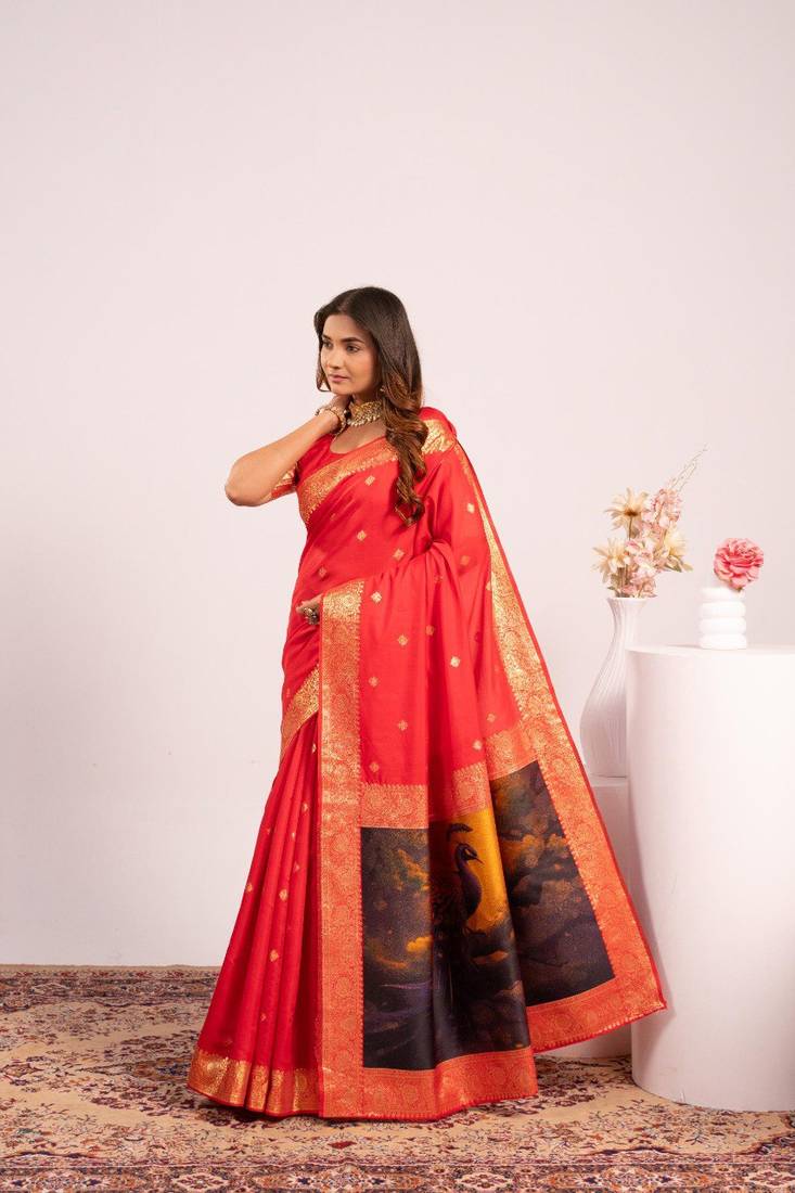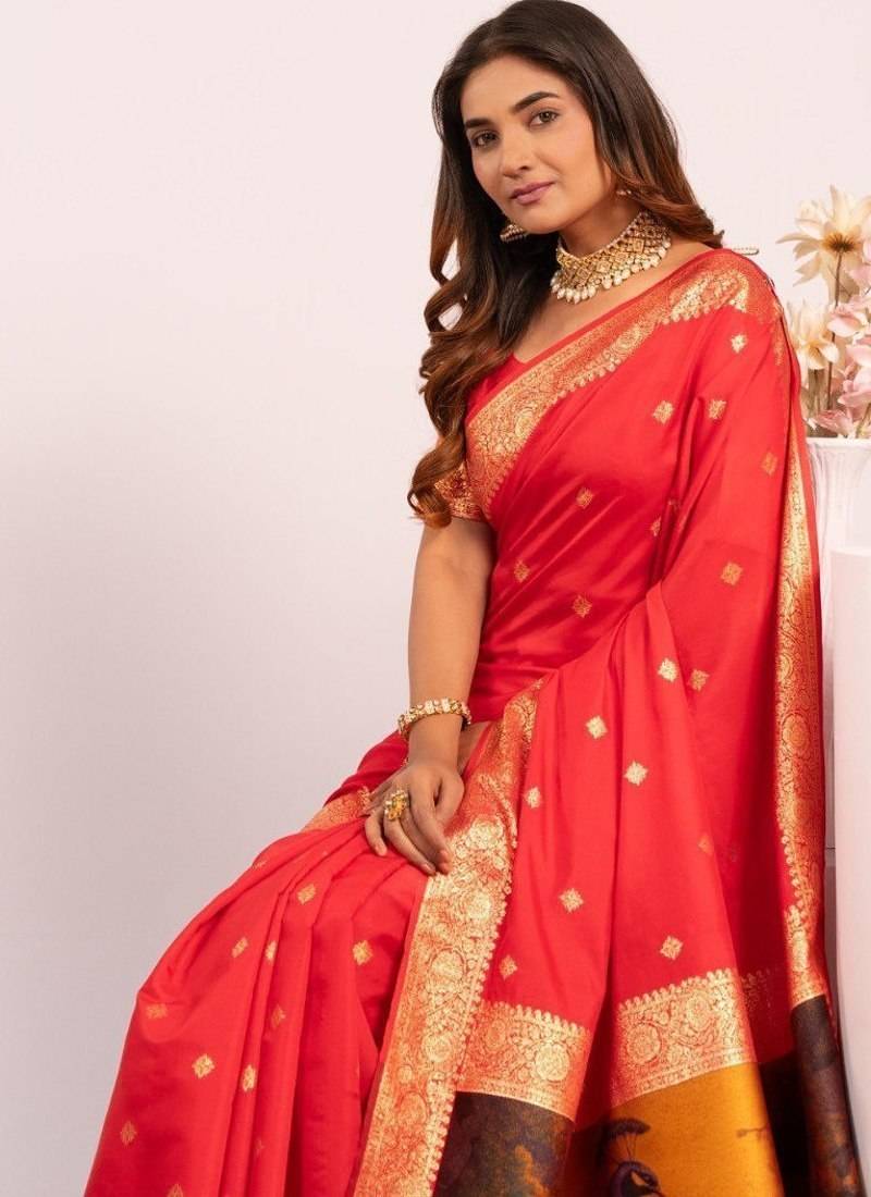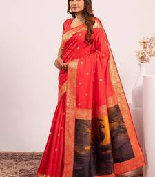 Red color banarasi art silk saree with blouse