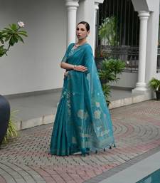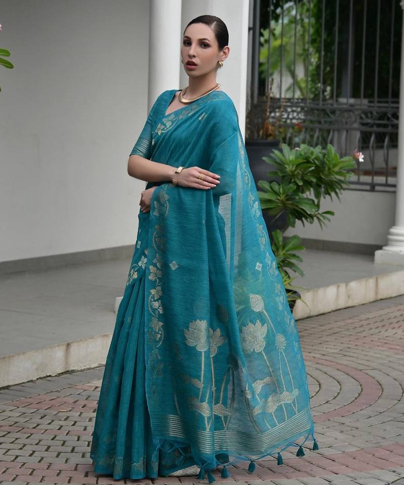 Product Name Teal Color Jute Art Silk Saree With Blouse