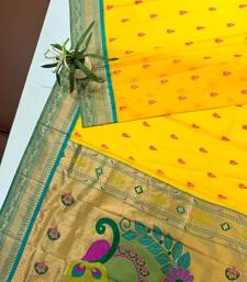 Yellow color banarasi paithani art silk saree with blouse