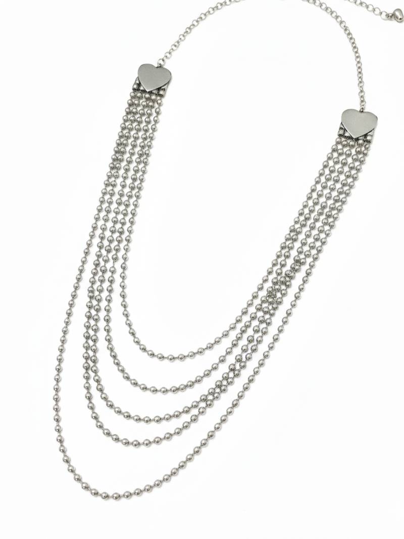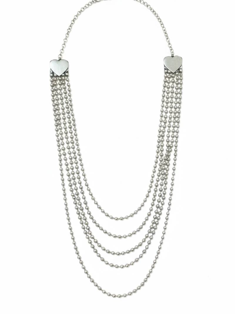 | Product Name | Nvr Women Silver Plated Multi Strand Ball Chain Necklace With Heart Accents | |