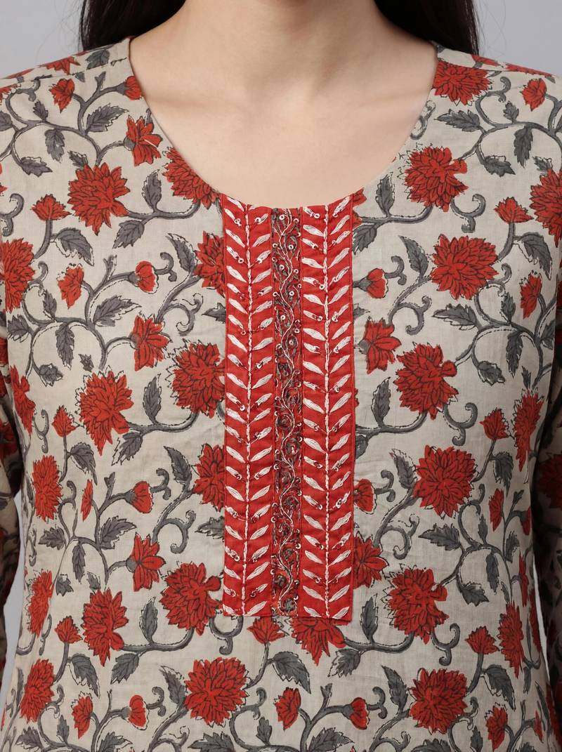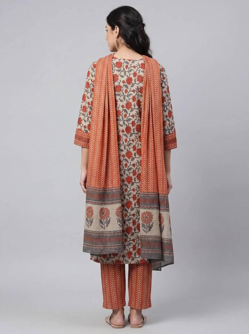 | Product Description | Women Light Maroon Cotton Printed Kurta Pant Dupatta Set With Hand Work |