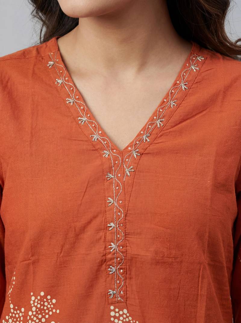 | Product Name | Women Orange Cotton Printed Kurta Pant Dupatta Set With Hand Work | |