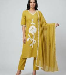 | Product Name | Women Yellow Cotton Printed Kurta Pant Dupatta Set With Hand Work And Embroidered Lace | |