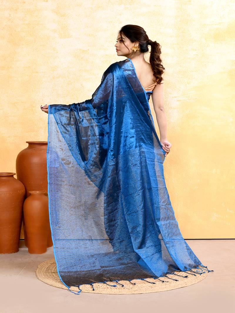| Product Name | Blue Dual Tone Organic Tissue Saree With Blouse Piece | |