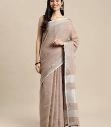 Beige color linen cotton solid saree with running blouse