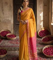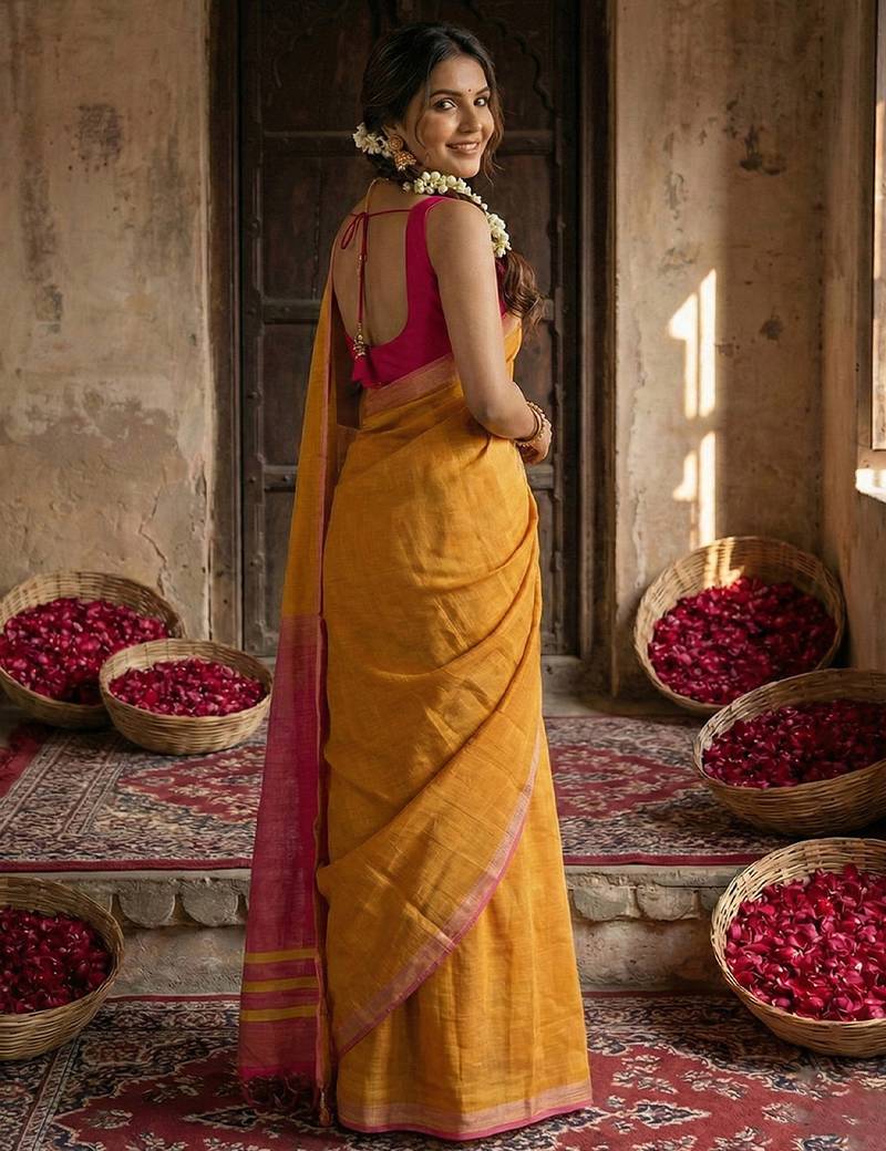 Product Name Gold Color Cotton Solid Saree With Blouse