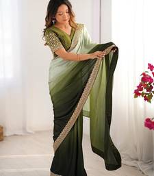 mehandi green color chinnon art silk thread sequince work saree with blouse