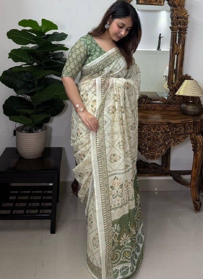 | Product Name | White & Green Color Linen Cotton Digital Print Saree | |