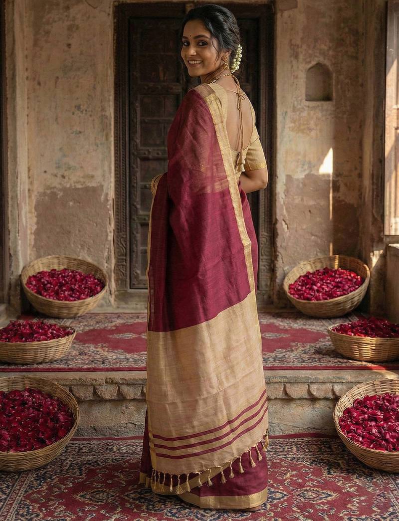 | Product Name | Wine Color Cotton Solid Saree With Blouse | |