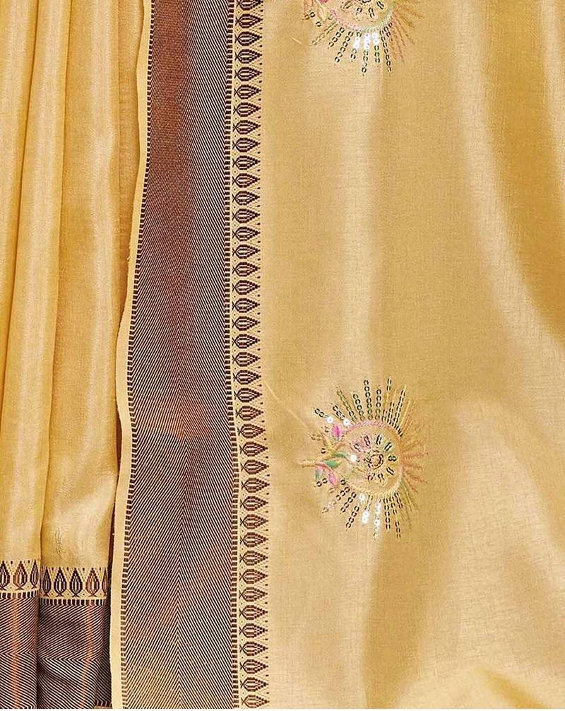 Yellow color weaving border & embroidered work rangoli art silk saree