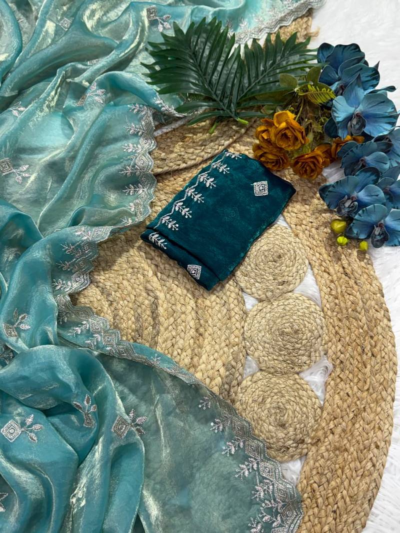 | Product Name | Blue Color Embroidery Jari And Sequance Work Space Silk Saree | |