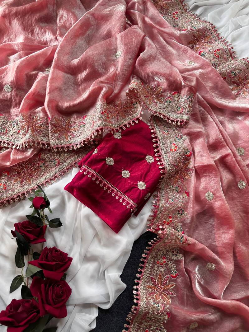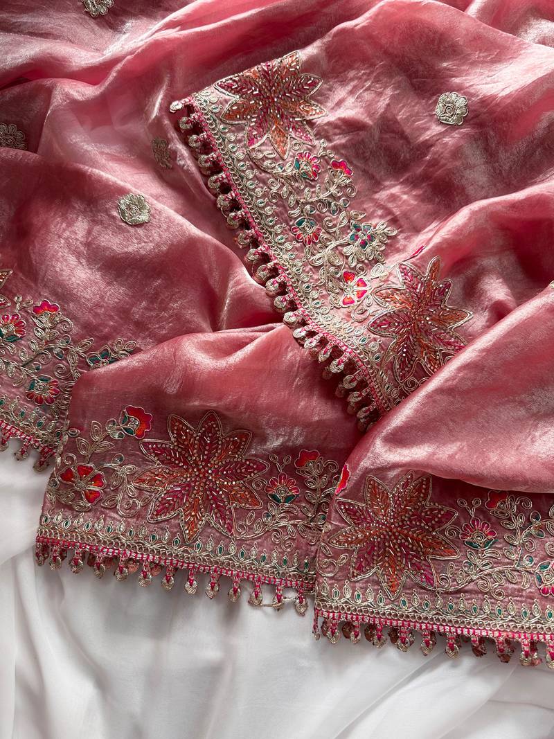 | Product Name | Pink Color Embroidered Satin Silk Saree Collection | |