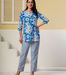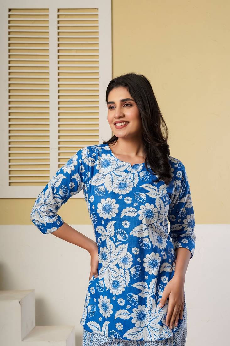 | Product Name | Blue Floral Printed Kurti With Straight Pants – Cotton Co Ord Set | |